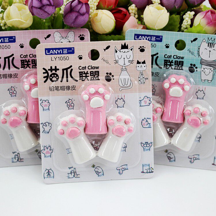 Creative cartoon pen cap eraser pupils school supplies stationery cute paw eraser children stationery gift