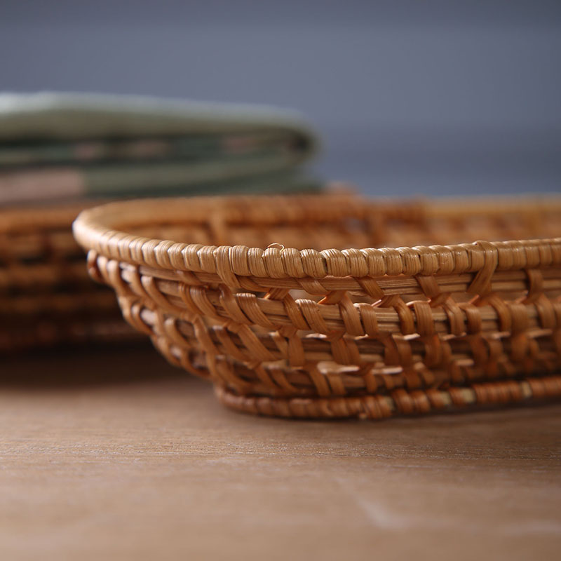 Vietnamese Rattan towels Towels Tea Ordering Dish Fruit Basket Refreshment Basket Creative Desktop Containing Basket Handmade Bamboo Woven Tea Towels