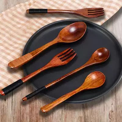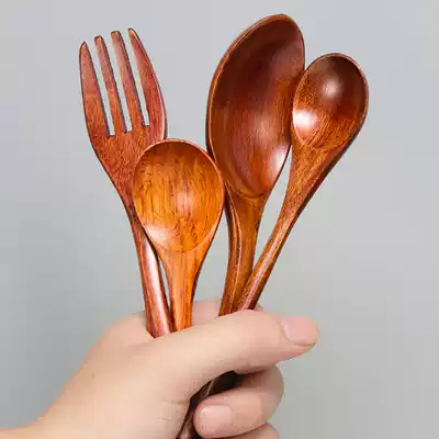 Japanese wooden spoon children's tablespoon household honey spoon eating scoop soup long handle spoon baby porridge spoon meal set