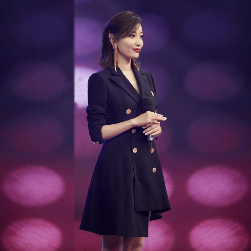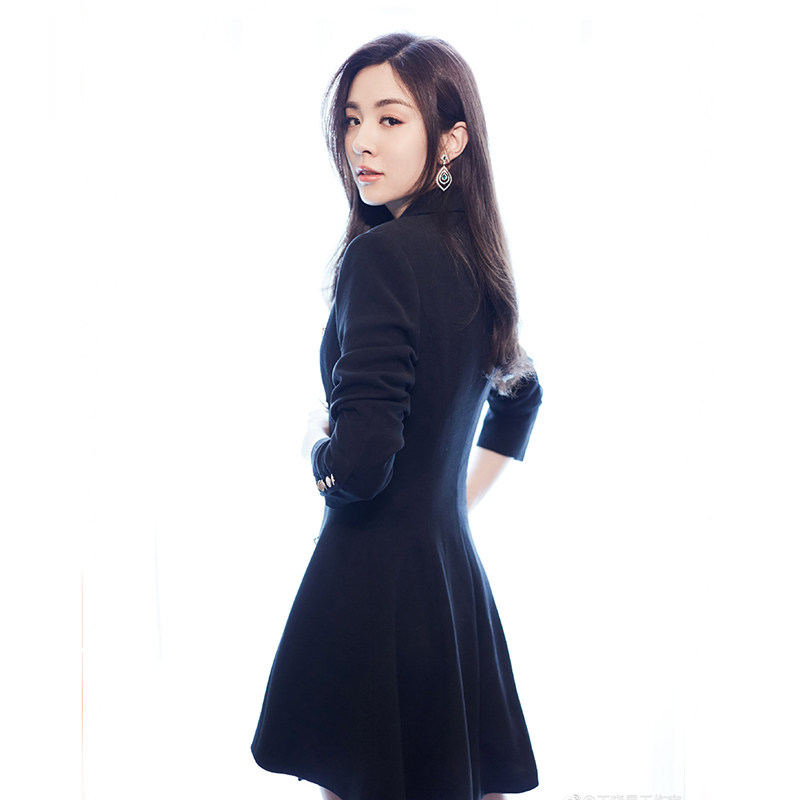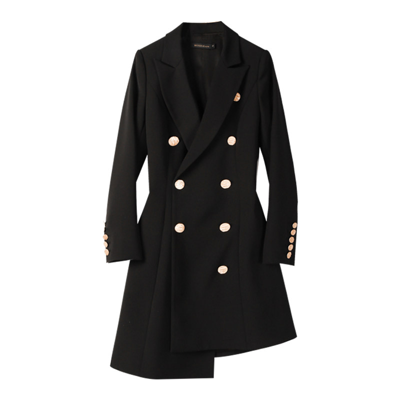 Autumn fashion commuter black suit jacket double-breasted suit dress slim medium and long version suit skirt for women