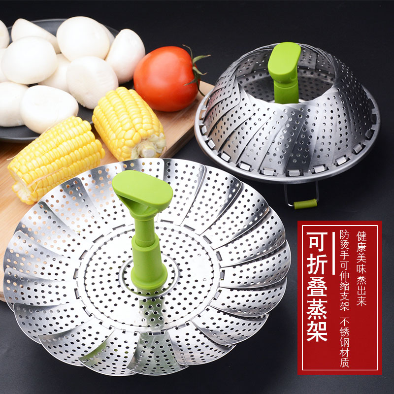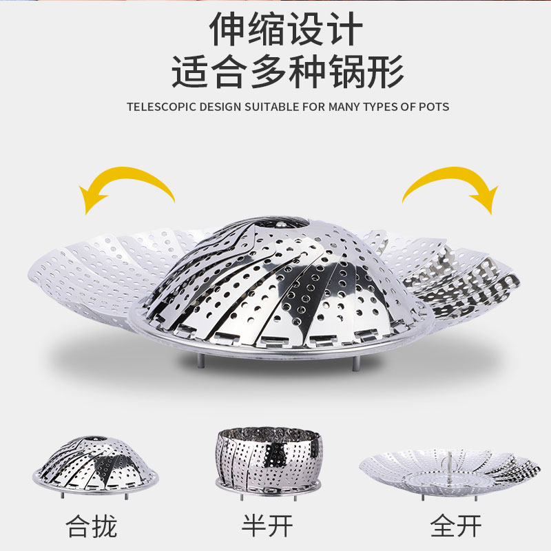 Stainless Steel Folding Steam Cage Frame Home Steam Shelf Creative Steam Cage Steamer Coop Telescopic Multifunction Thickened Steam Pan
