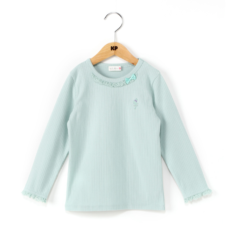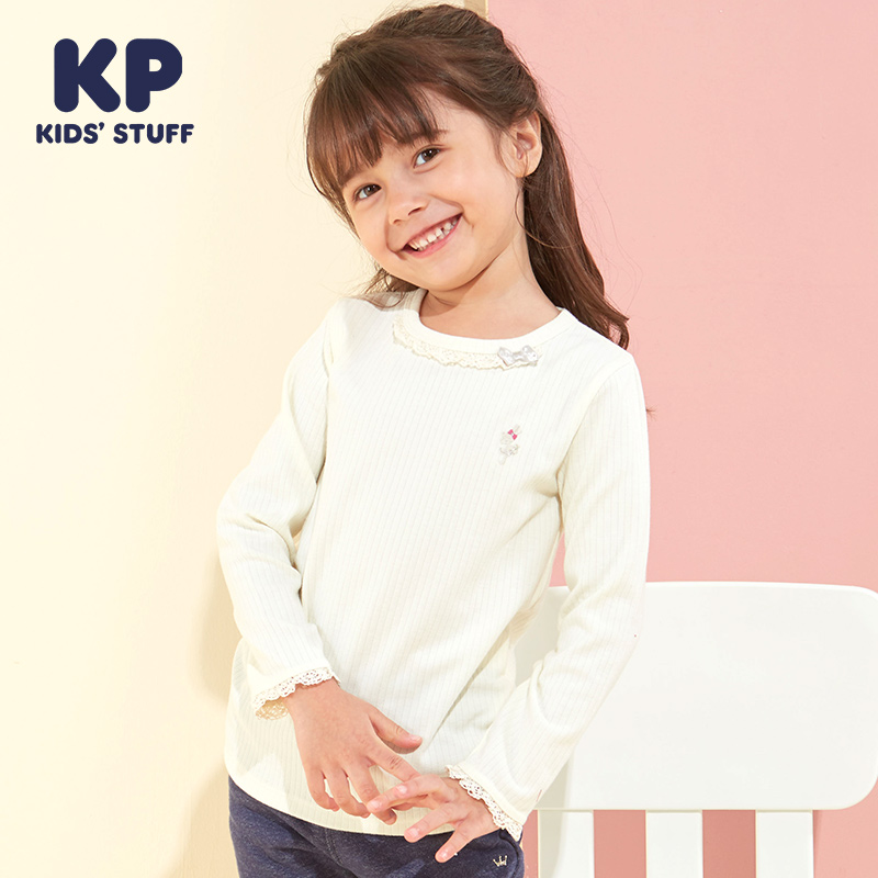 KP children's clothing Girls spring and autumn lace neckline long-sleeved children's bottom shirt top Japanese children's clothing K1932113R