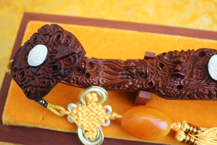 Small Leafy Purple Sandalwood Log Kowloon Ruyi Red Wood Wood Carving Swing Piece Handicraft Home Decoration Gift