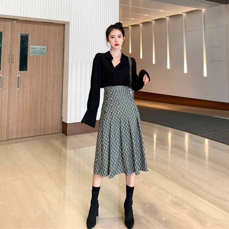 Black tops with a half - body skirt