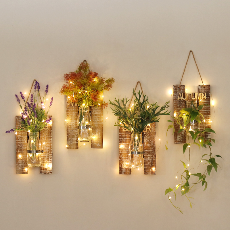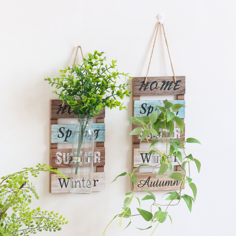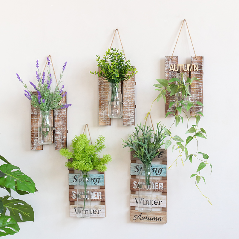 Wall hanging vase creative hanging on the wall wall hydroponic green plant living room home wood plank background wall decoration pendant
