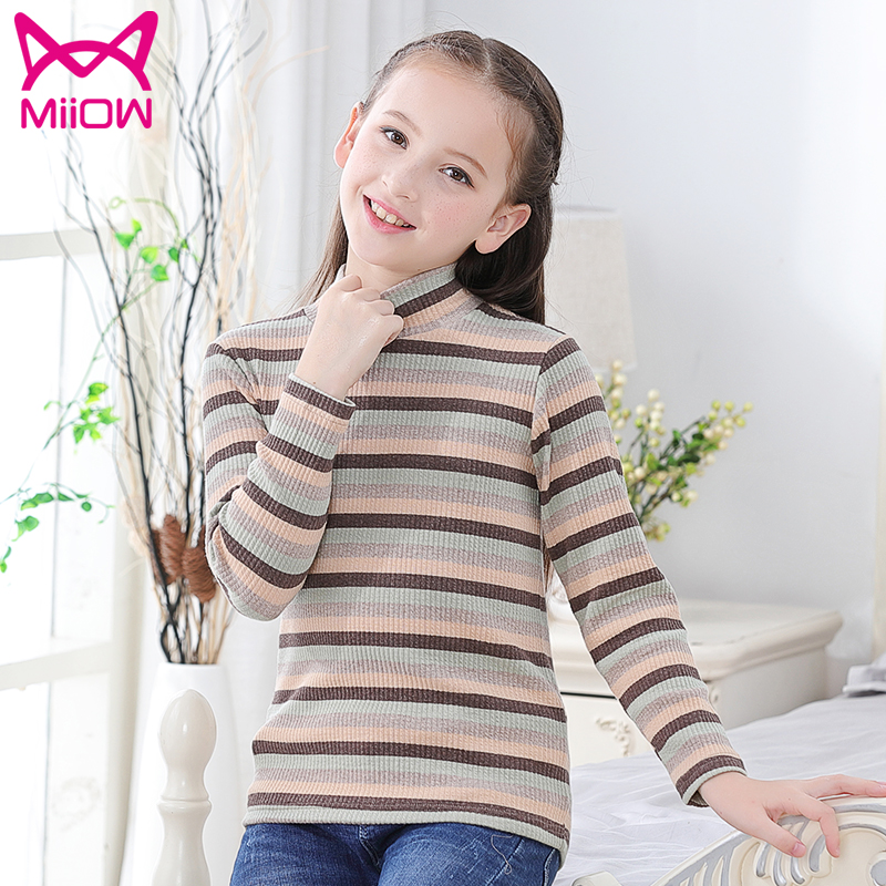 Catman 2019 New Girls Turtleneck Bottoming Shirt Girls Pure Cotton Children's T-Shirt Long Sleeve Spring and Autumn Big Children's Underwear