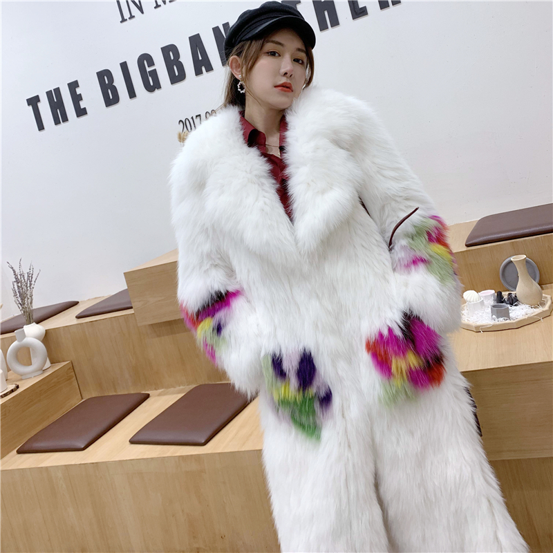 2022 new fur imported fox fur woven fur coat women's mid-length large lapel suit collar coat