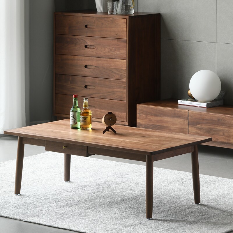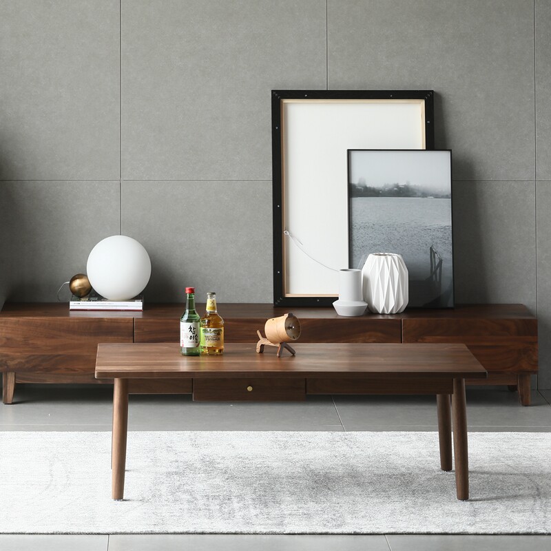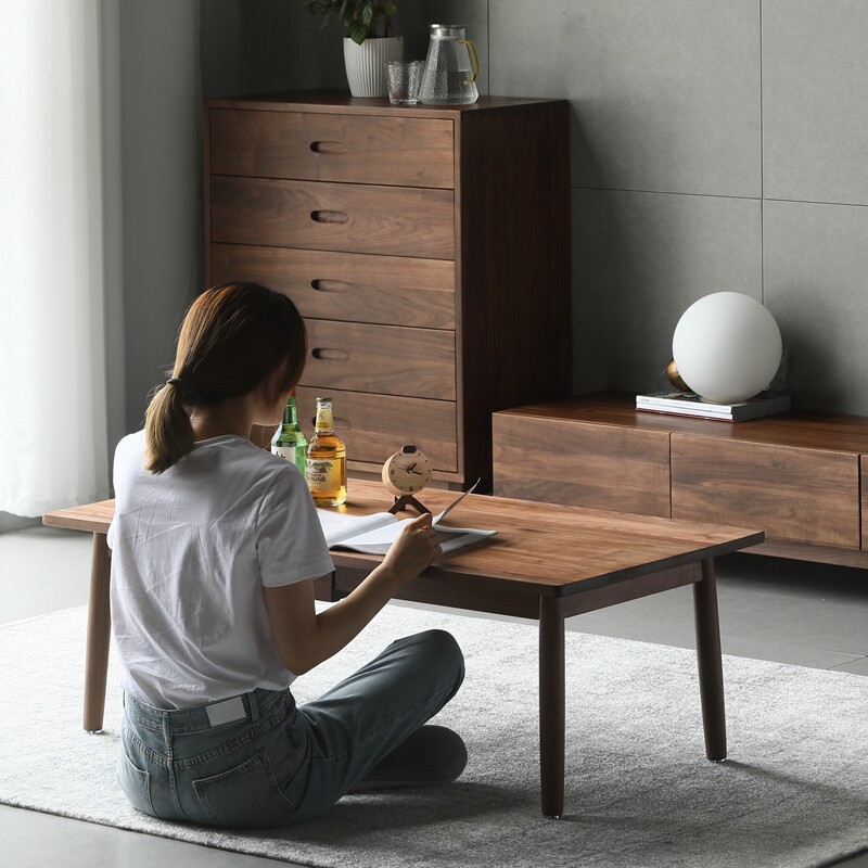 Nordic solid wood tea table simple modern small apartment living room home North American black walnut tea table simple small table