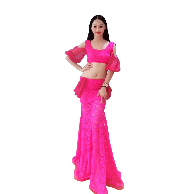 Dance wing belly dance practice suit women 2019 new summer lace fishtail long dress suit Oriental dance suit 3080