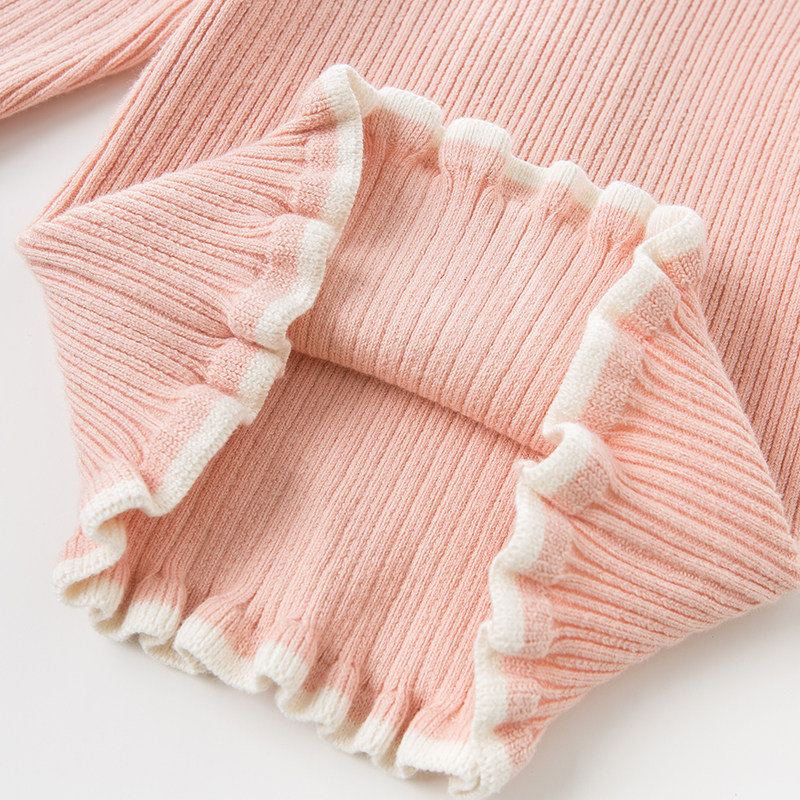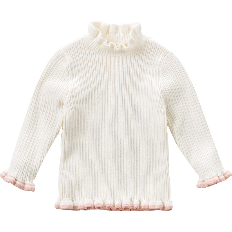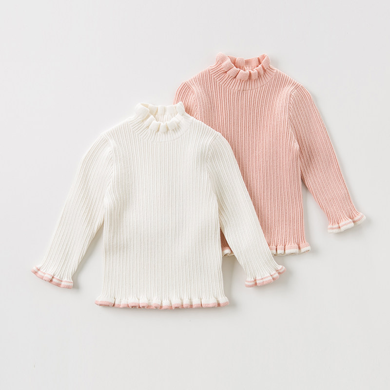 davebella David Bella baby children's clothing autumn and winter girls baby pink and white lace pullover knitted cotton sweater
