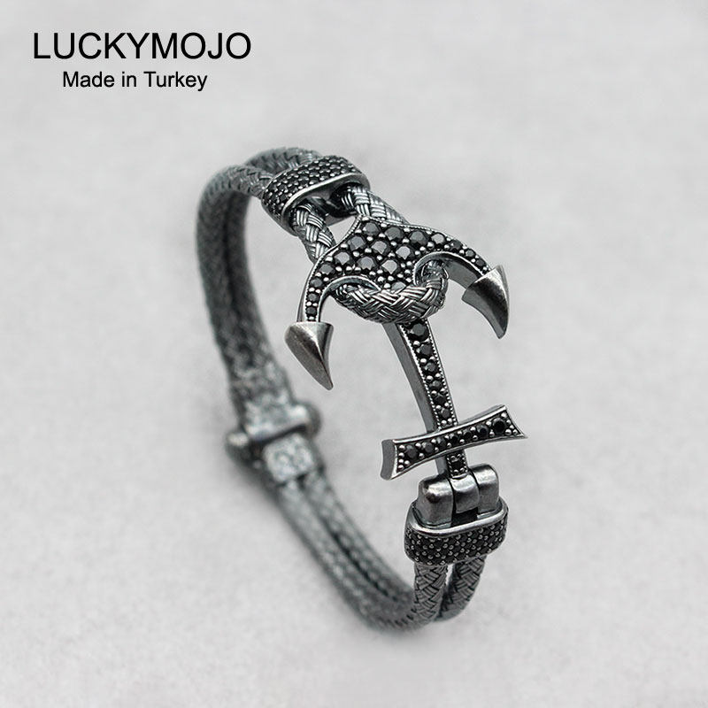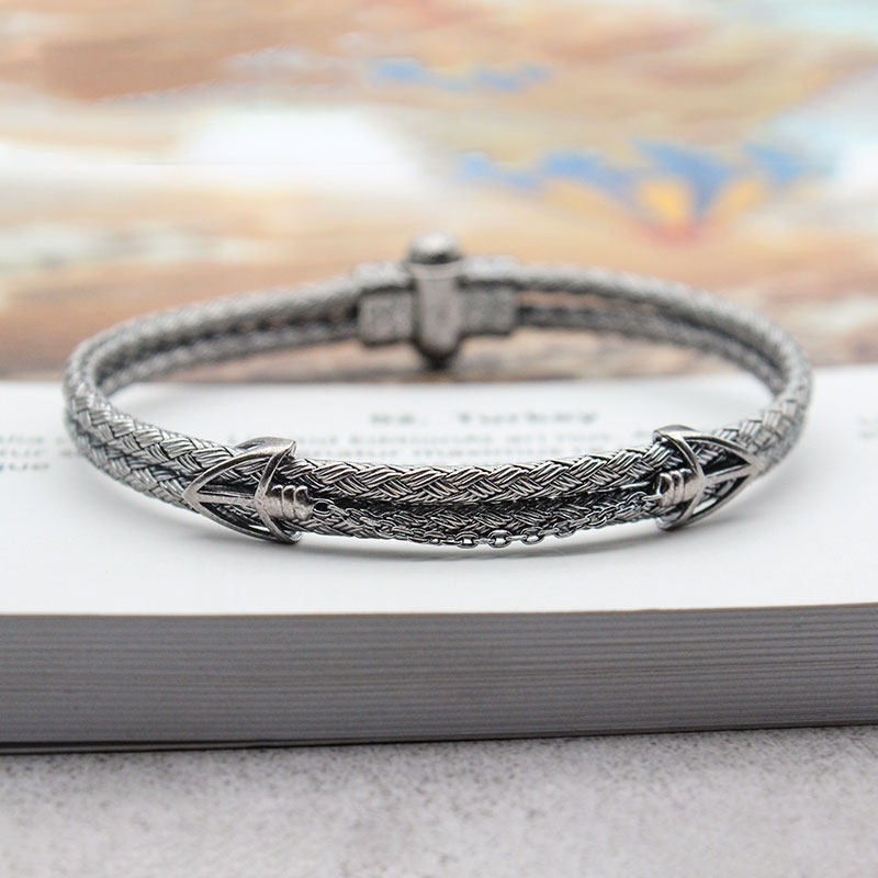 Retro Rivet Pure Silver Bracelet Male Tide Personality Braided Hand-made Boat Anchor Couple Silver Bracelet Children Gift Boyfriend