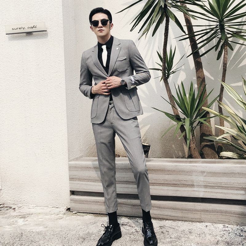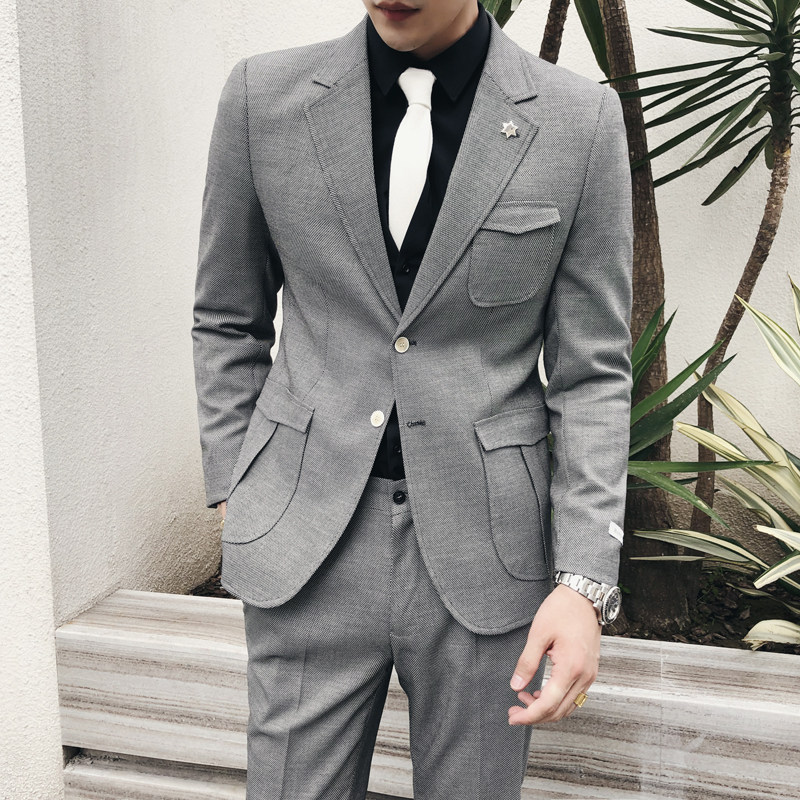 Business formal men's two-piece suit suit Fashion slim gentleman Professional Youth banquet Wedding dress suit