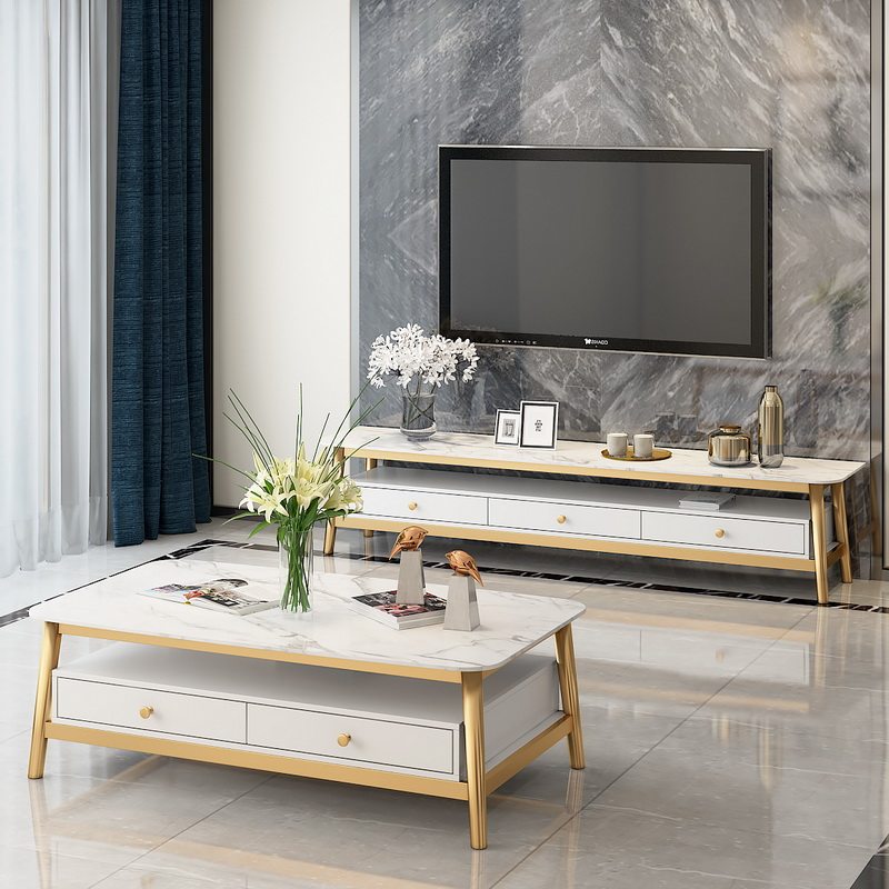 Nordic Wind Marble TV Cabinet Tea Several Combinations Package Modern Simple Small House Living Room Light Luxury Furniture