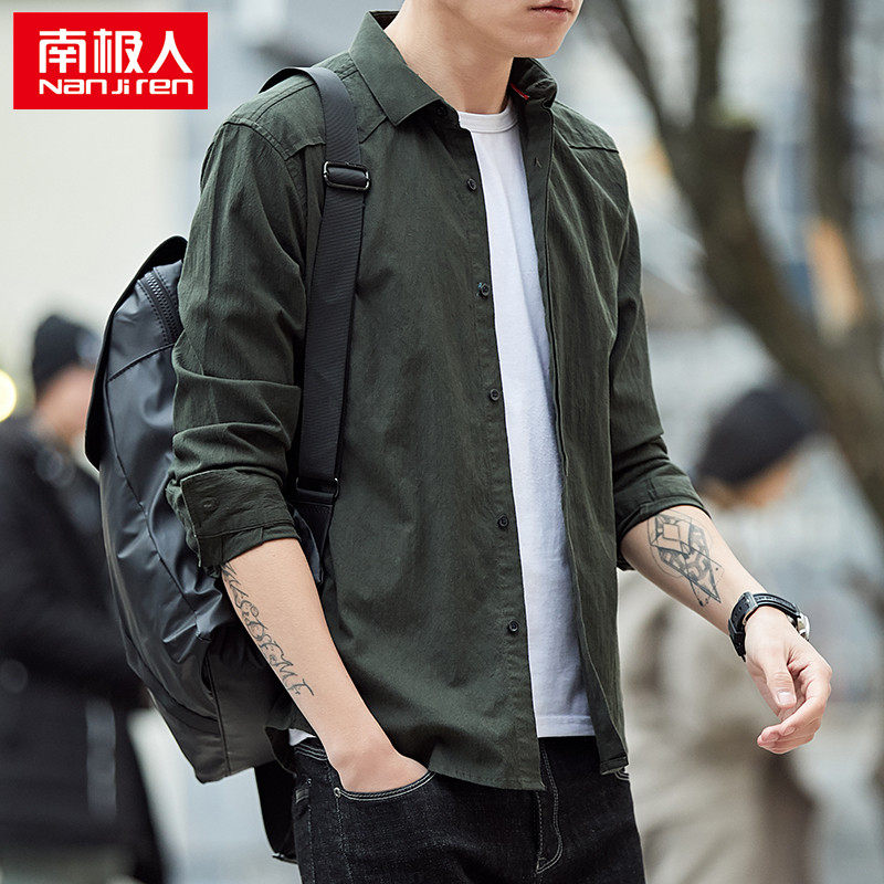 Antarctic person pure cotton overalls shirt men casual long sleeves shirt Han version trendy spring autumn season slim fit jacket-Taobao