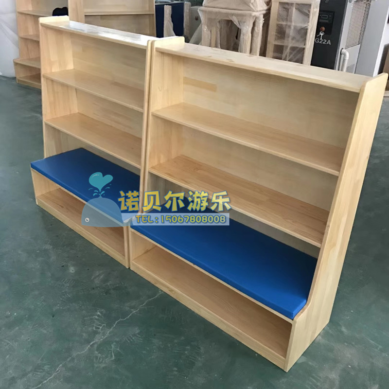 Kindergarten Children's Book Room Solid Wood Zhangzi Pine Combined Bookshelves Plotbook Containing shelf Show cabinet Softbag can be sat in cabinet