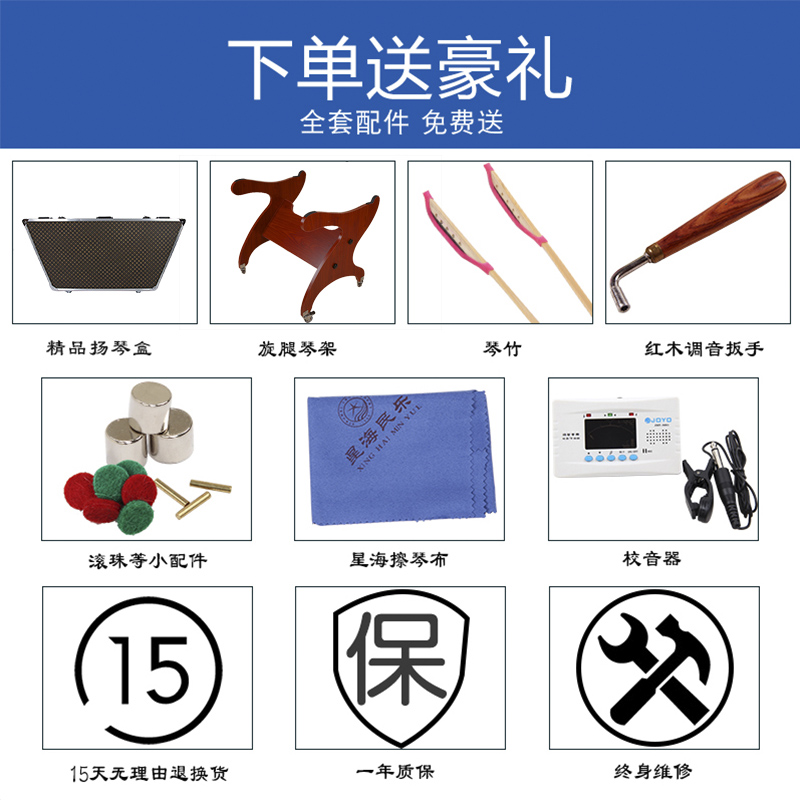 Starsea 402 Yangqin Musical Instrument African Purple Sandalwood Professional and Appraisal Exam Playing the Yang Qin Flower Pear Wood Bay Sculpture Yangqin