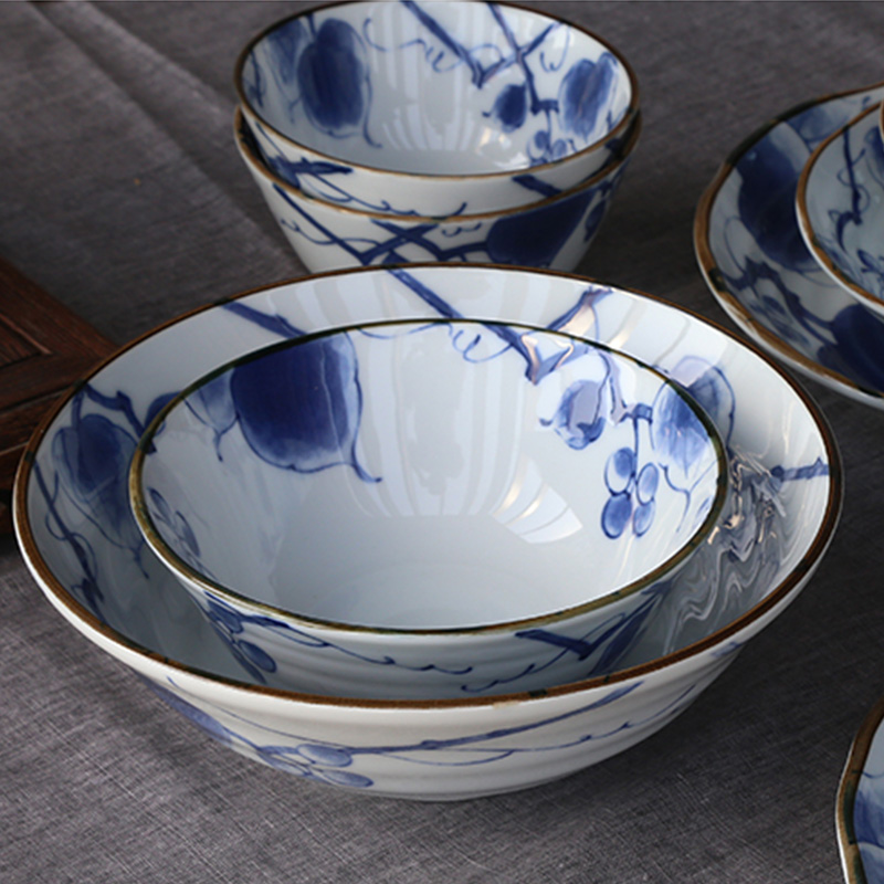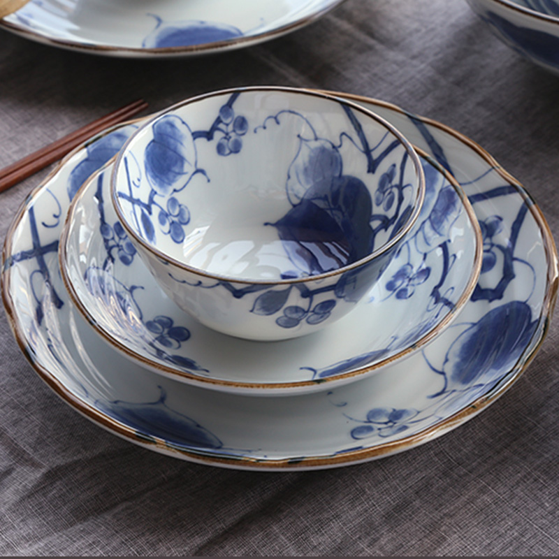 Japan imported mountain return ceramic tableware set plate rice bowl tableware household flat plate underglaze color deep plate