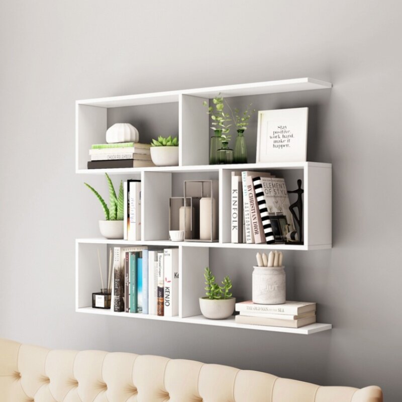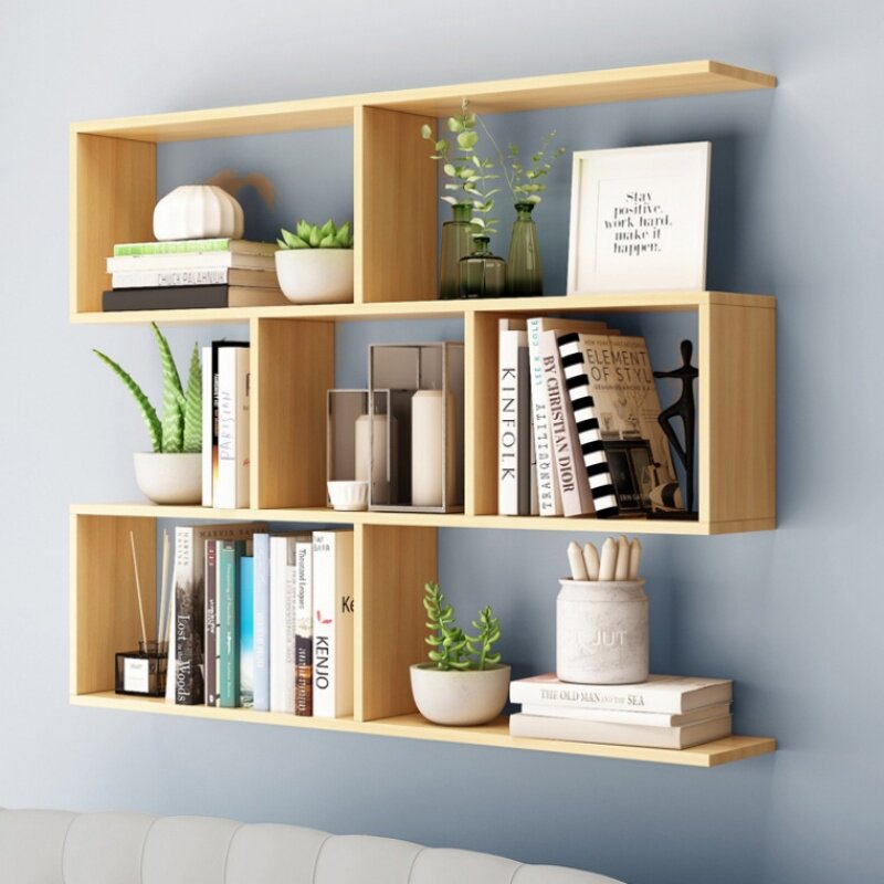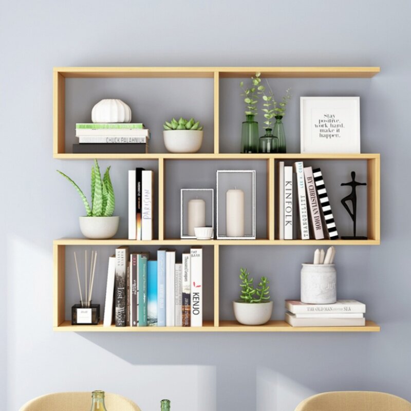 Wall shelf solid wood wall hanging bookshelf living room background wall hanging cabinet wall cabinet locker room creative bookcase