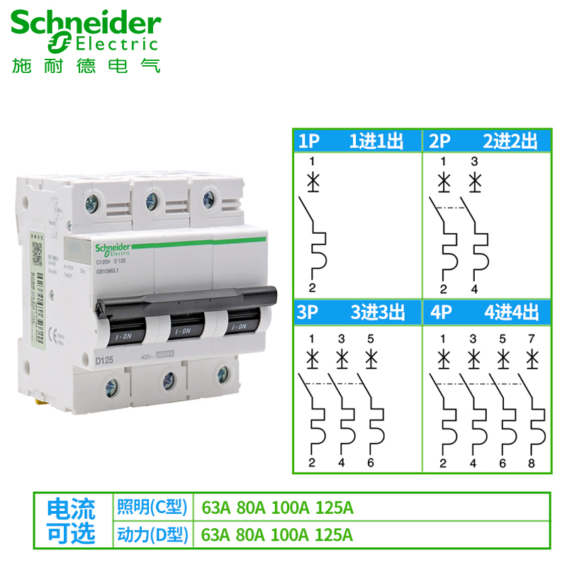 Schneider A9 air switch C120H breaker 1P80A large current 2P100A empty open 3P125A D model