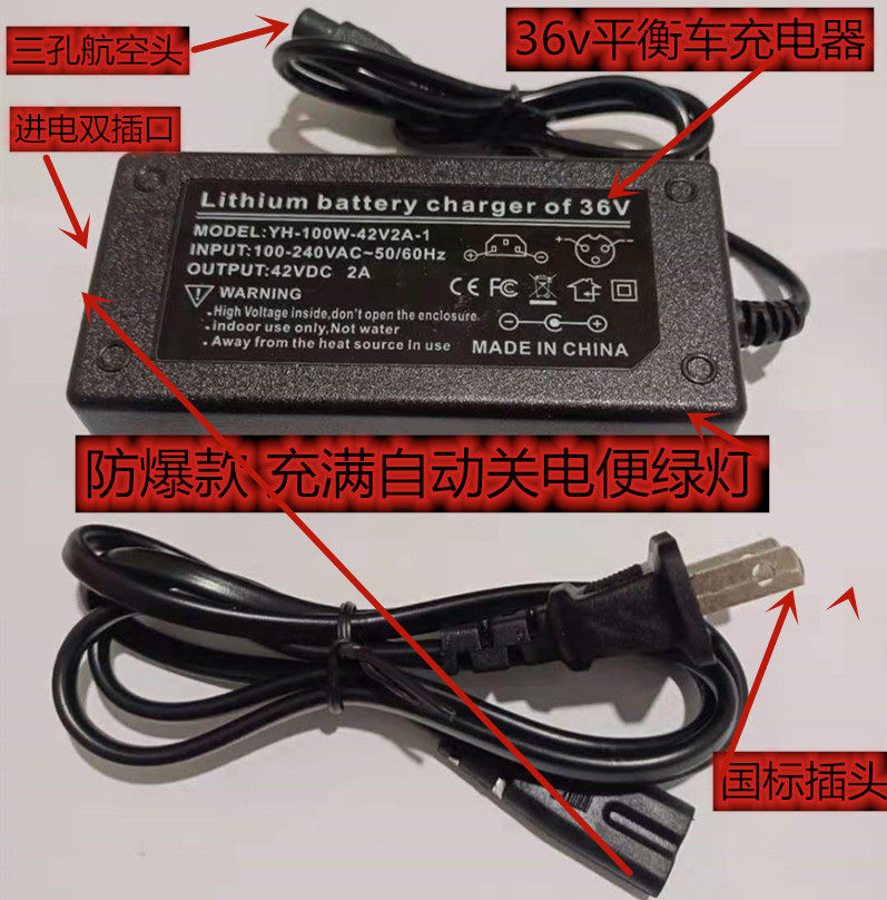 42v conventional balance car charger 42V2A charger balancing car universal high fit with protection 42v1A36 balance car charger 42v36 balance car charger card tap