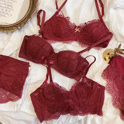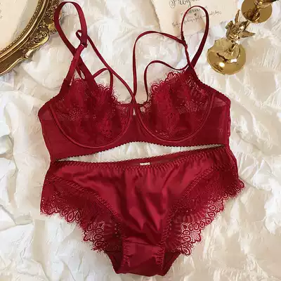 This year's life, the red luck, Red Wedding, ultra-thin lace sexy underwear with steel ring underwear set big chest small
