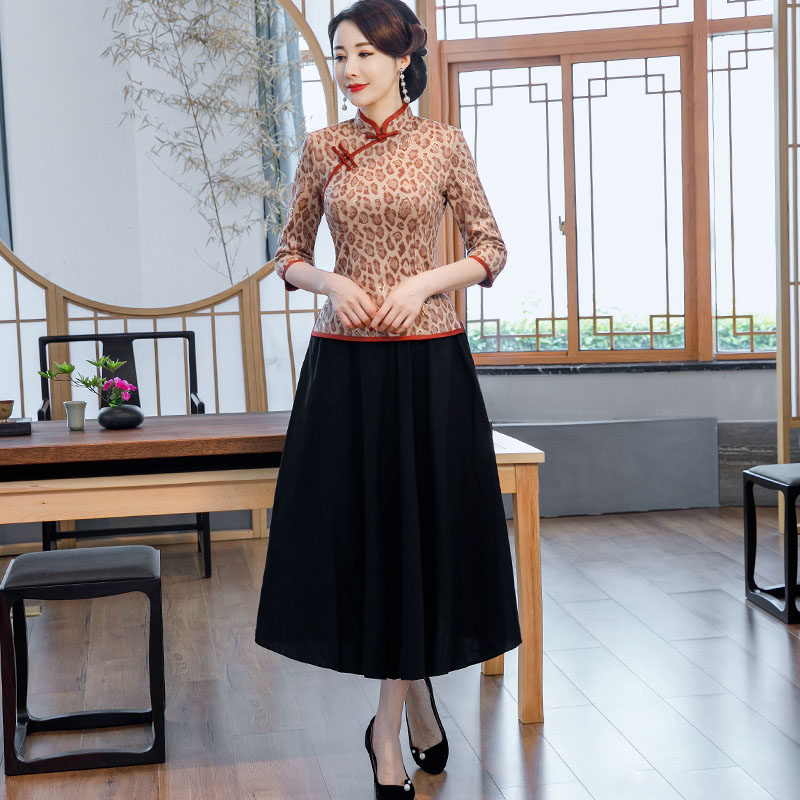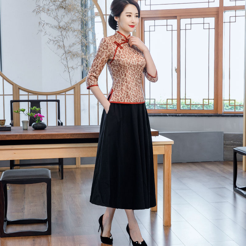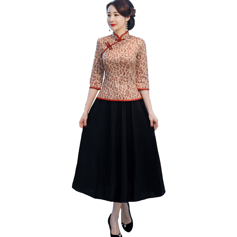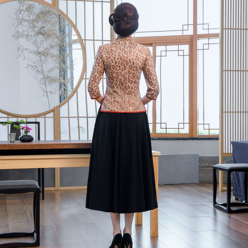 Improved cheongsam women's autumn dress 2022 new women's retro medium and long-sleeved Tang suit mother's top two-piece dress