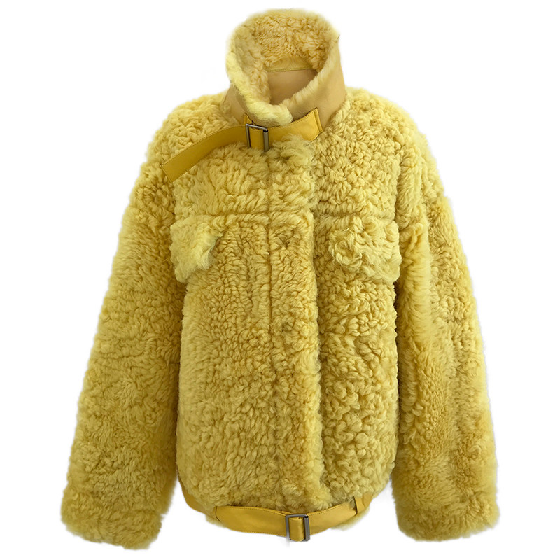 CC fur "a lemon" jump off dull imported balsa wool fur coat
