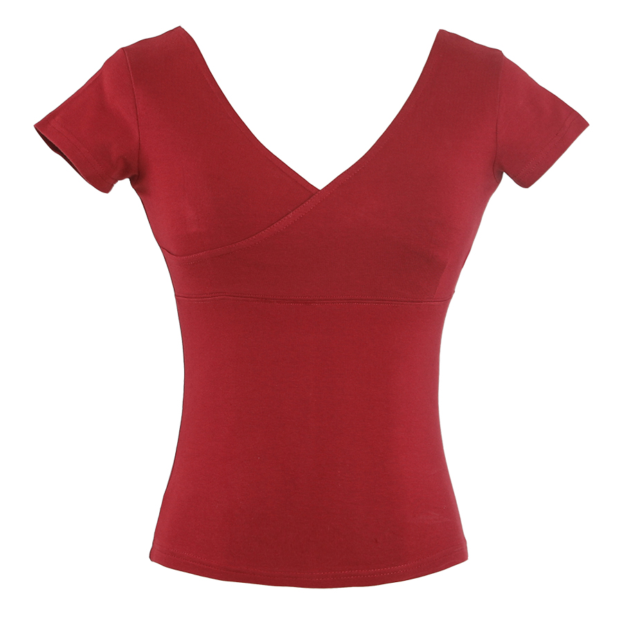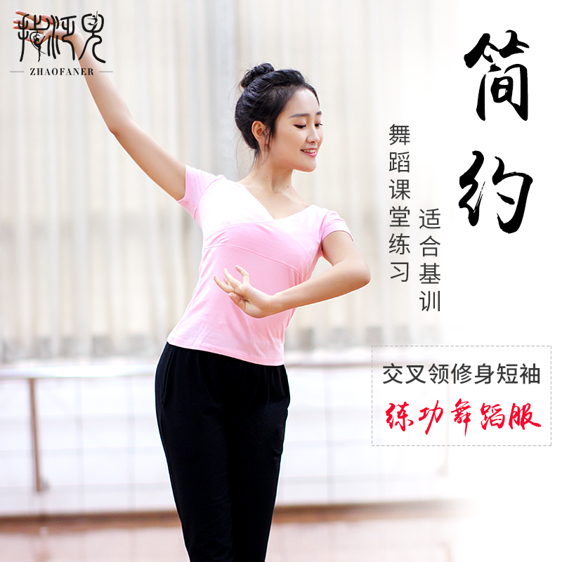 V collar front cross dance blouses with female adult practice dance suit cotton short sleeve white dance clothes body dancer-Taobao