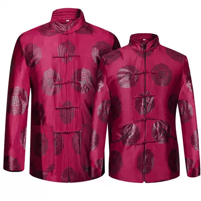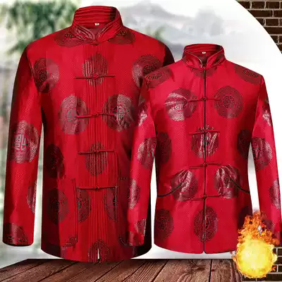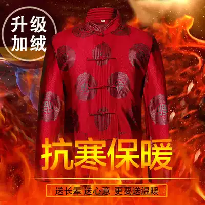 Middle-aged and elderly Tang suit men's quilted jacket plus velvet thickened grandpa autumn and winter jacket Parents and couples give birth to the elderly day wedding clothes
