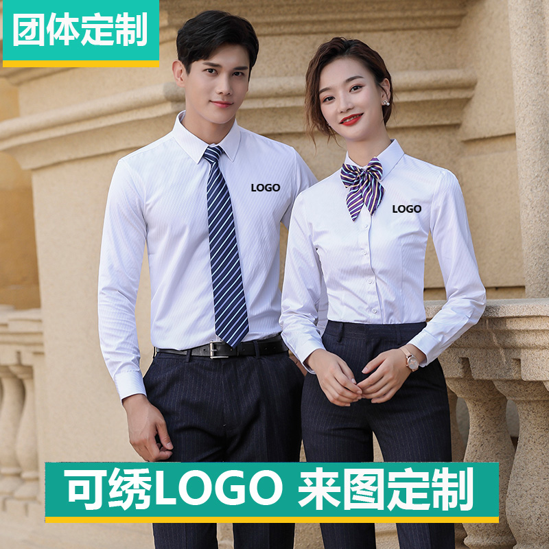 Customized high-end men's and women's autumn long sleeve professional shirt slim-free ironing striped shirt work clothes embroidered LOGO
