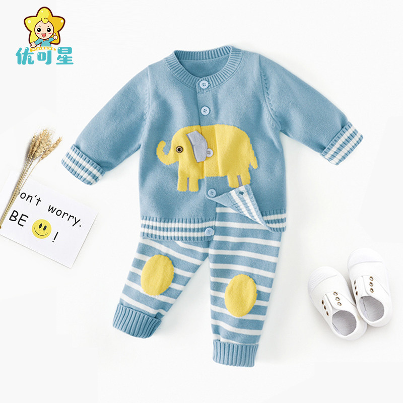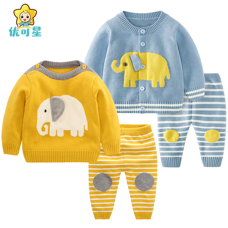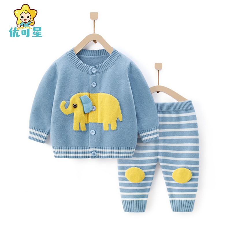 Baby sweater set boys knit cardigan baby plus fleece thickened 01 year old baby girl spring and autumn winter