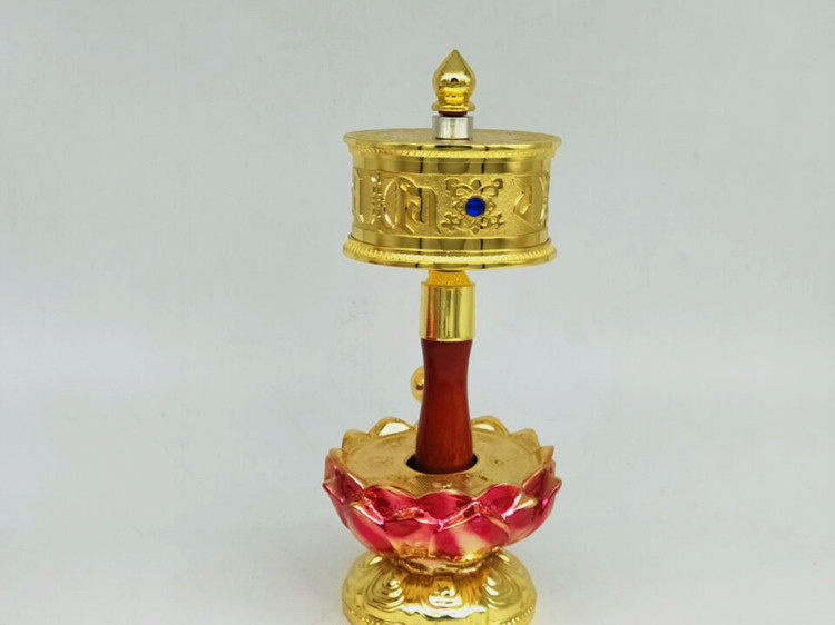 Golden hand-cranked prayer wheel beautiful eight auspicious lotus pedestal (rose gold) prayer wheel lotus pedestal