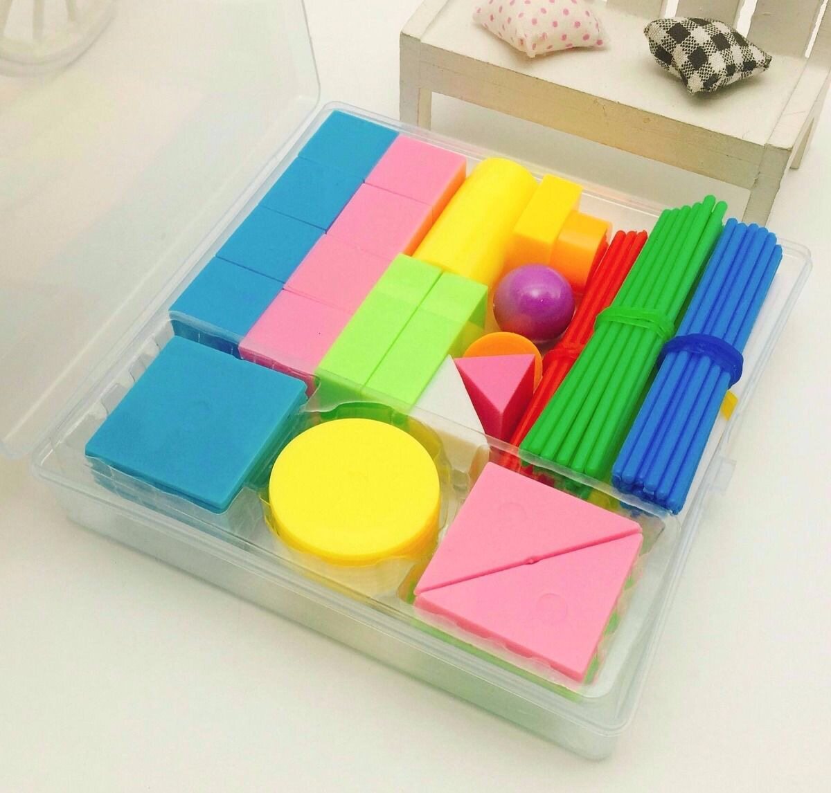 Primary school students Three sets teaching aids multifunctional positive square solid geometric figure mathematical teaching aids small stick rectangular piece suit