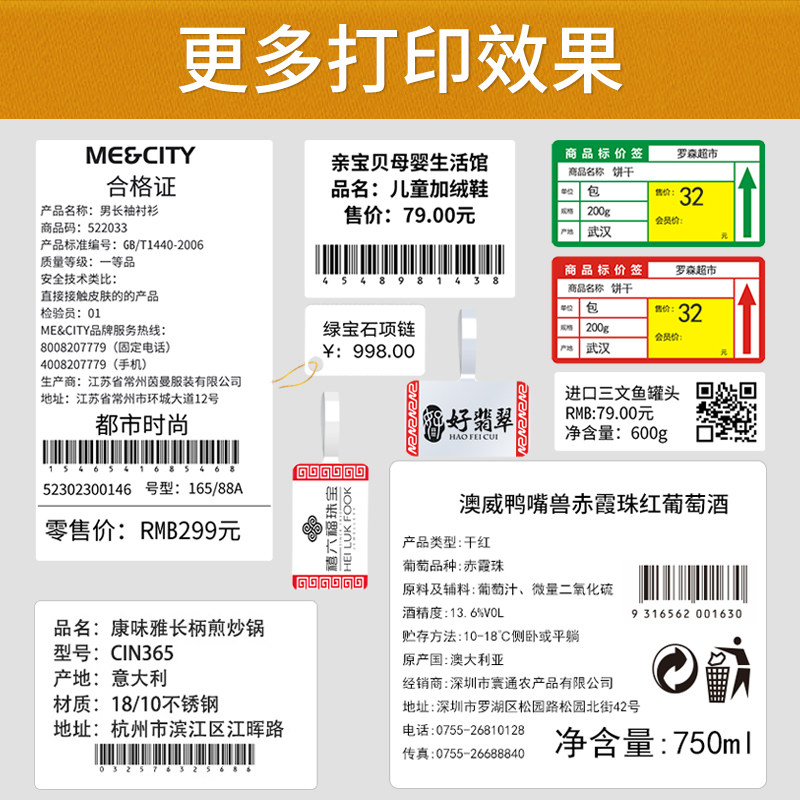 Jingchen T2 Self-adhesive barcode label printer Clothing tag washing mark Jewelry matte silver paper certificate Fixed assets Supermarket shelf price Commodity label paper ribbon Thermal printer
