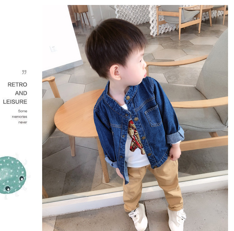 Child Denim Jacket Spring Clothing 2022 New CUHK Scout Loose Jacket Tide Boy Jacket Spring Autumn foreign pie