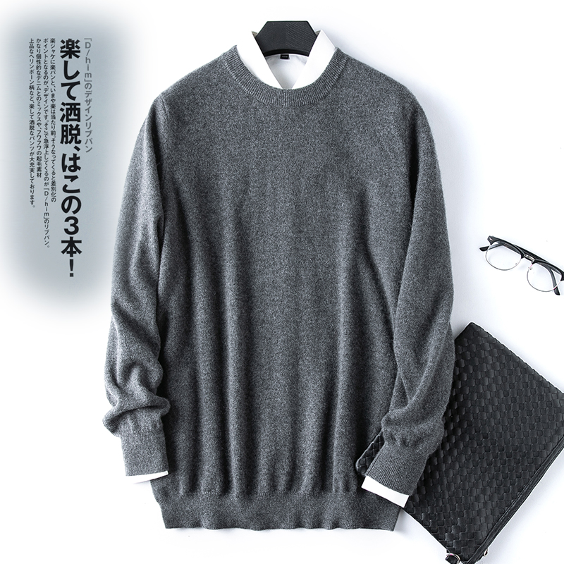 20 autumn and winter cashmere sweatshirt male jacket pure cashmere needled round collar business hit bottom pure kashmir cashmere sweater sweater