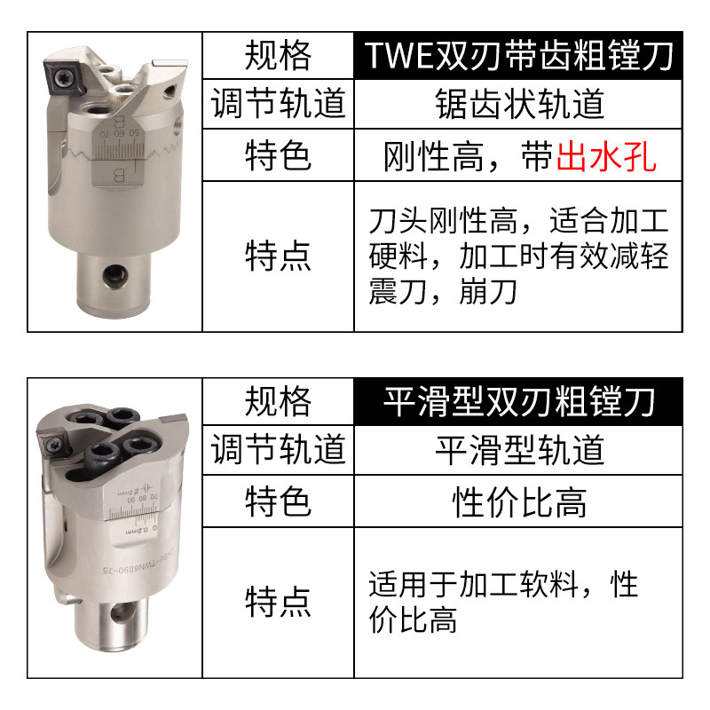 CNC machining center CNC adjustable double head TWN rough boring bit EWN fine tuned fine boring bit BST shank