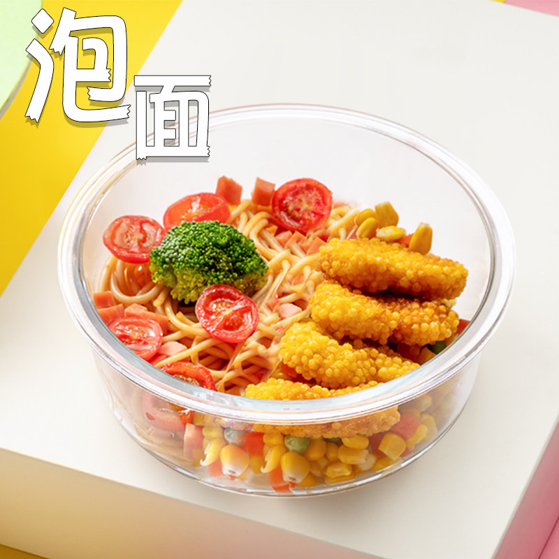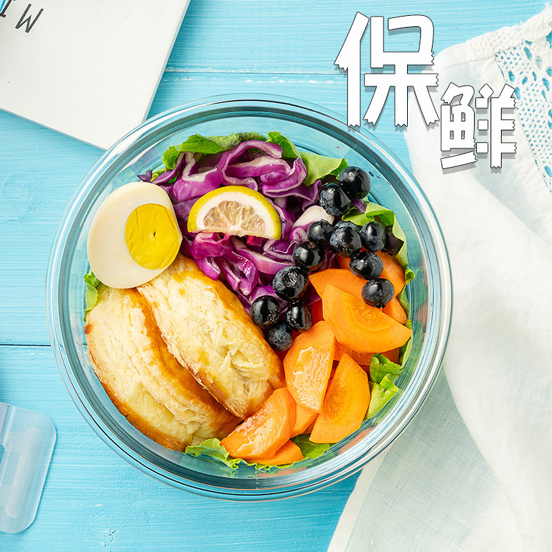 Sealed lunch box Office worker glass bento box with lid Microwave oven heated rectangular bowl Refrigerator small round fresh box