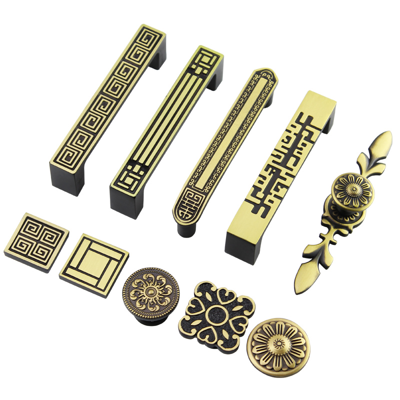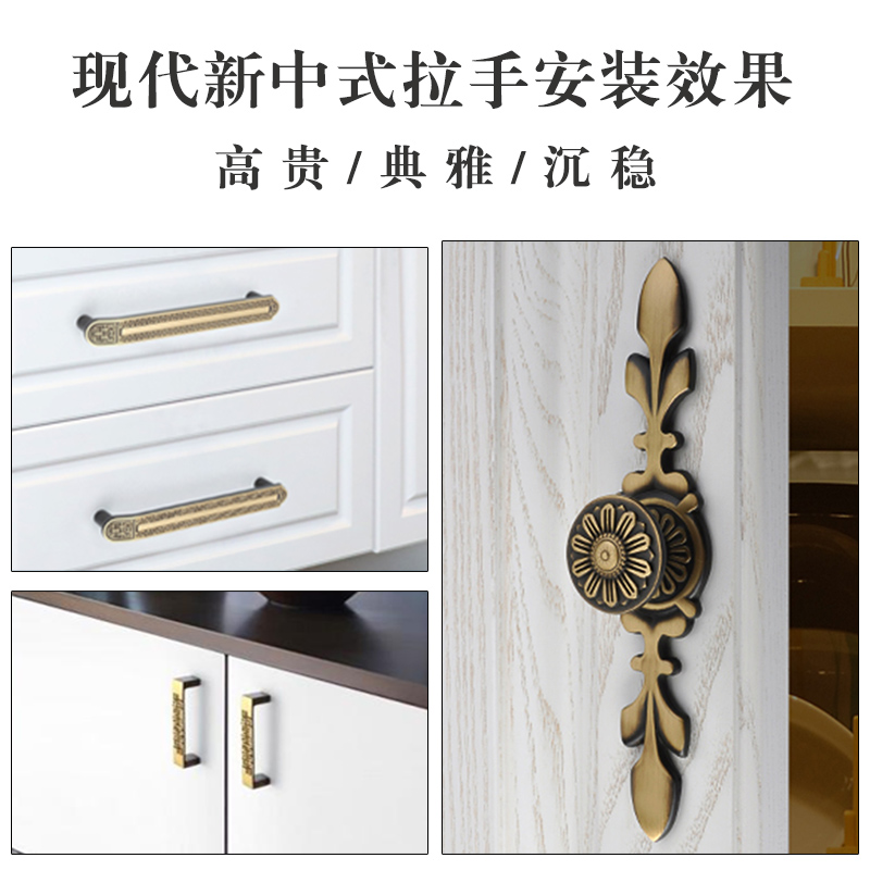 New Chinese style pure copper handle Wardrobe door Antique overall cabinet Shoe cabinet door drawer buckle hand Solid green bronze single hole handle