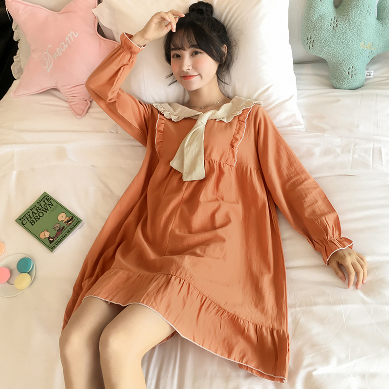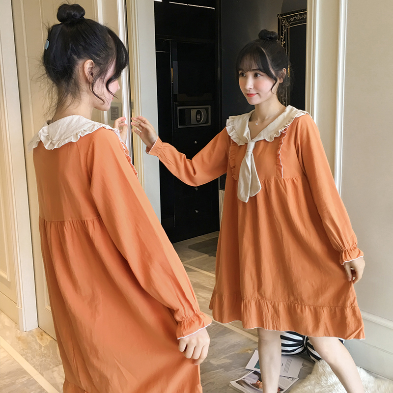 Korean version of pajamas women spring and autumn winter princess wind young lady nightgown long sleeves woven cotton sweet cute home clothes