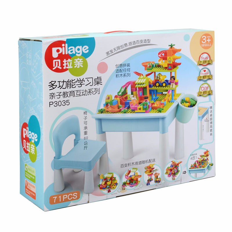 Bella pro-multifunction study table parent-child education interactive series containing building block table assembled chute toy gift box