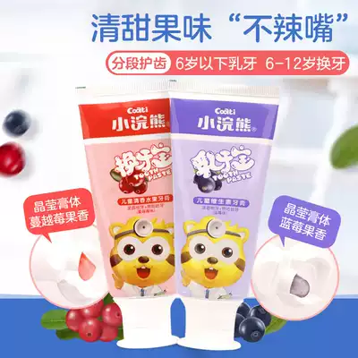 Little raccoon children toothpaste 3-6-12 years old children fruit flavor fluoride-free toothpaste baby deciduous tooth replacement period 70g