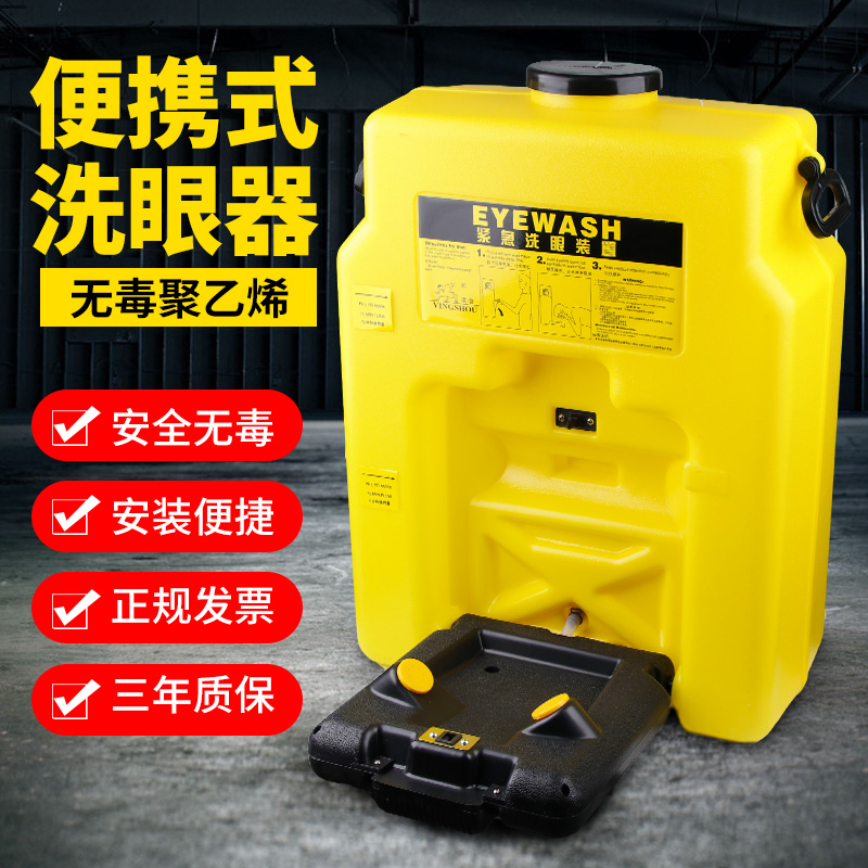 Portable eye washer Simple double-port mobile emergency eye washer Plastic 53L wall-mounted eye washer factory inspection