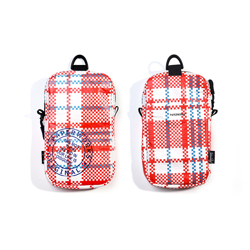 PAPERWORKS Original red and white blue pattern DuPont paper mobile phone package digital key bag with neck-slung bag