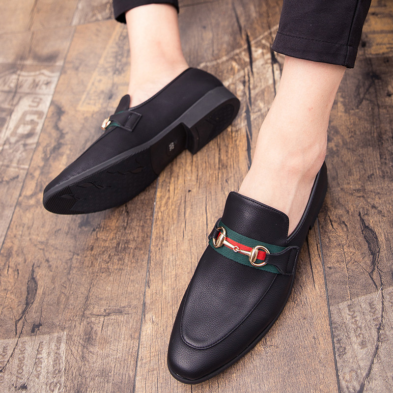 A foot pedal shoes men's shoes Summer thin English Trendy Casual Pointy Leather Shoes Nightclub Hair Stylist Wedding Boomer Shoes