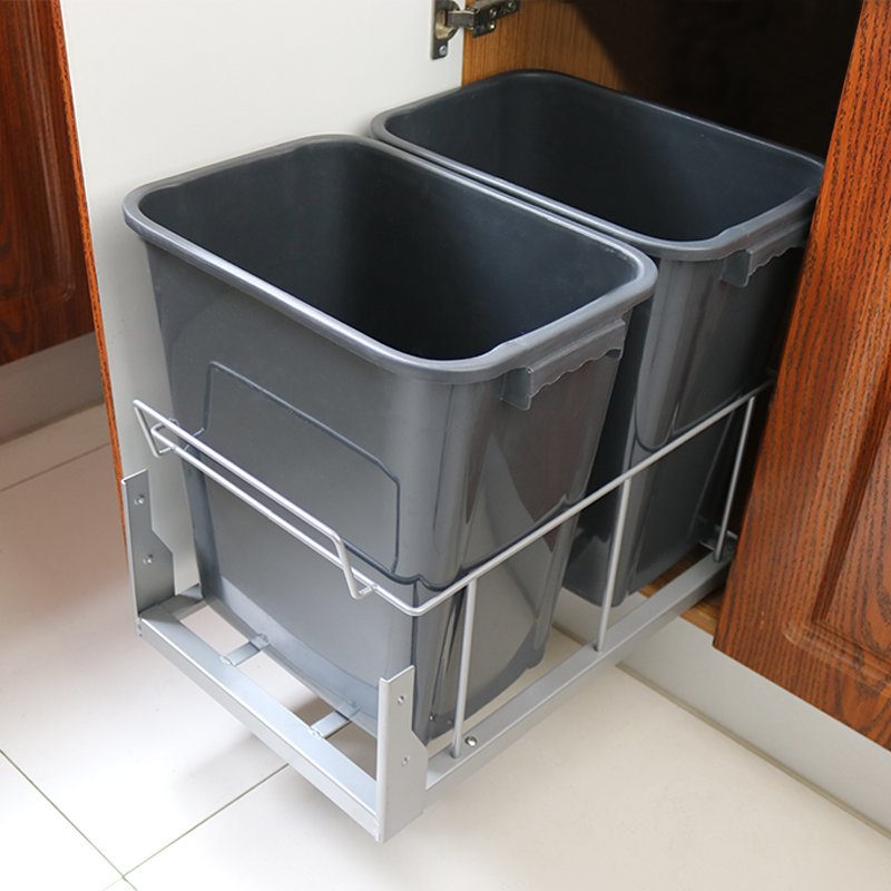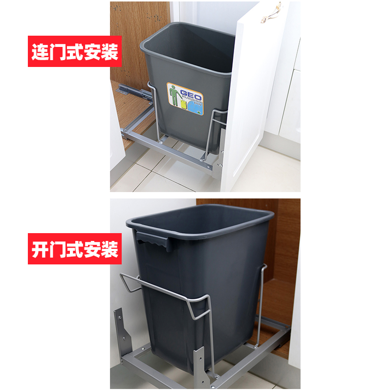Kitchen high body pull-out hidden embedded food waste classification debris trash can Overall cabinet built-in large capacity with lid