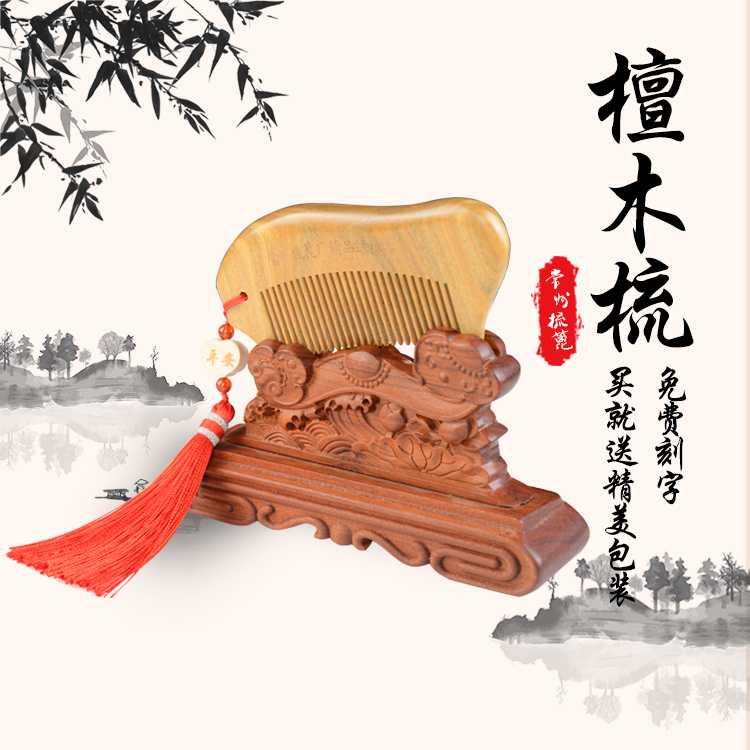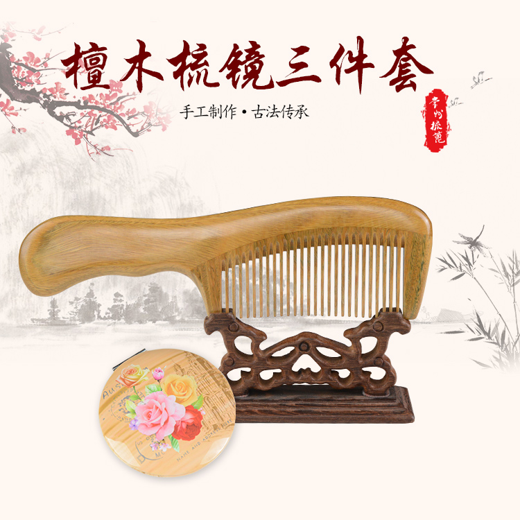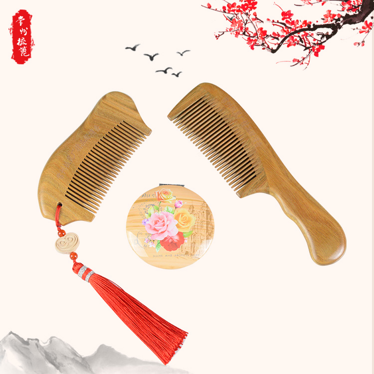 Changzhou comb grate natural green sandalwood comb Gift box set gift box set free engraving