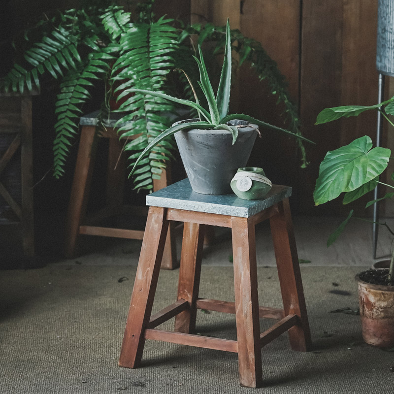 Retro-gray blue wood bench flower frame with iron-skin solid wood balcony plant pot green rot pot