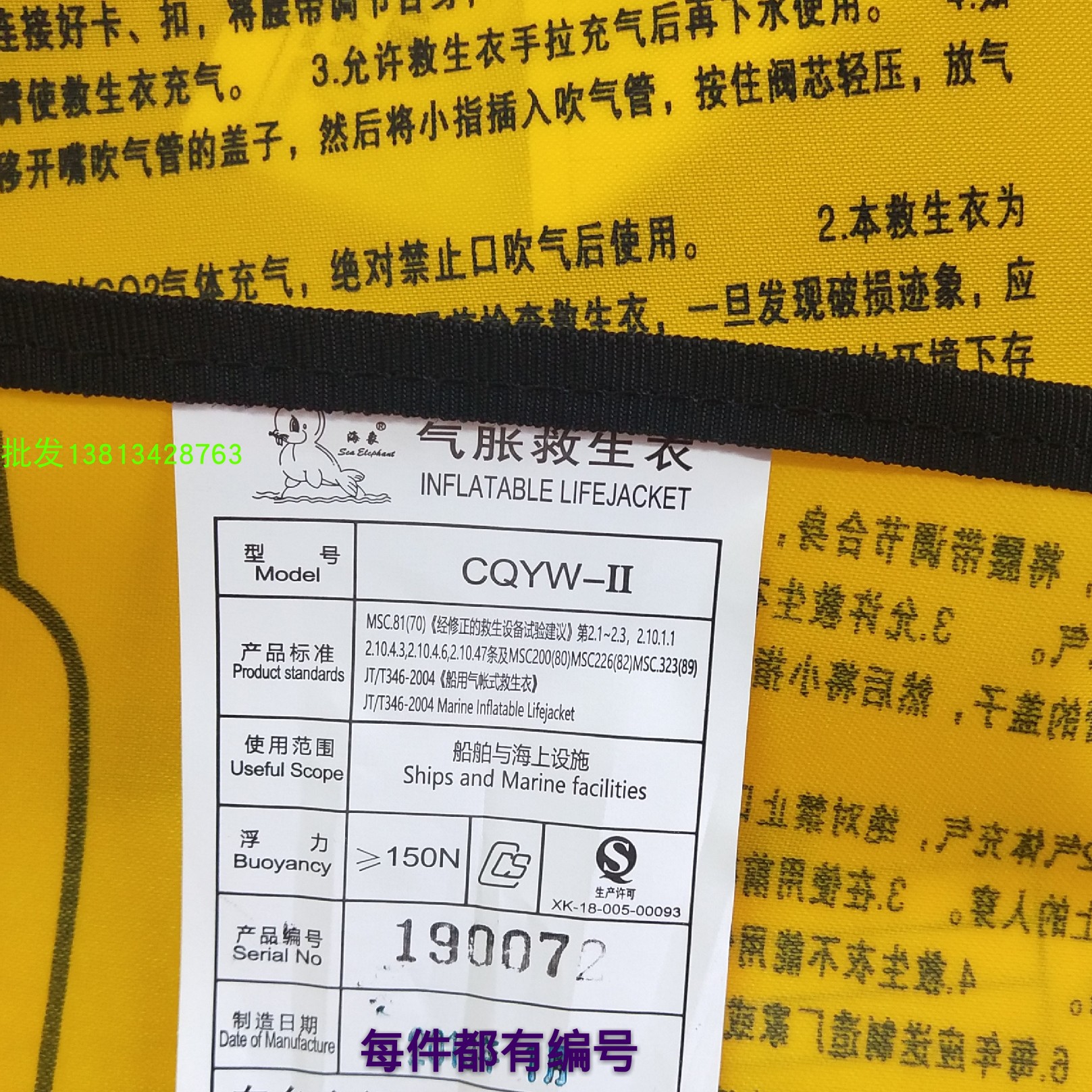 Marine life jacket automatic model (with CCS certificate)Marine life jacket manual model (with CCS certificate) Water-soluble tablets (automatic model) 33 grams of CO2 small gas bottle