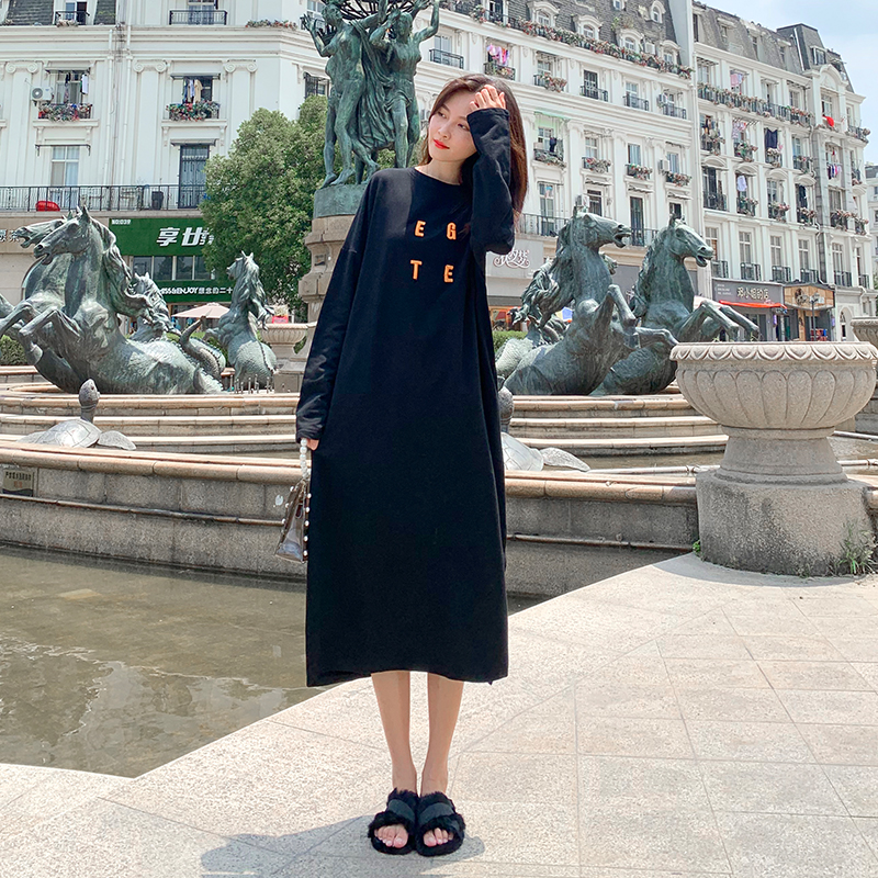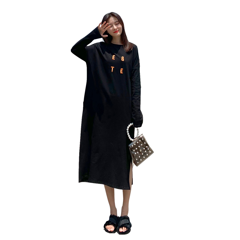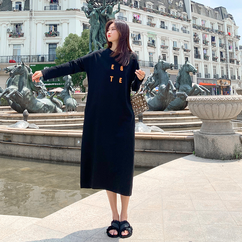 2021 Spring and autumn Korean version in long version over kneecap skirt jacket head loose cover with slim pregnant woman Ocean dress Women's spring and autumn